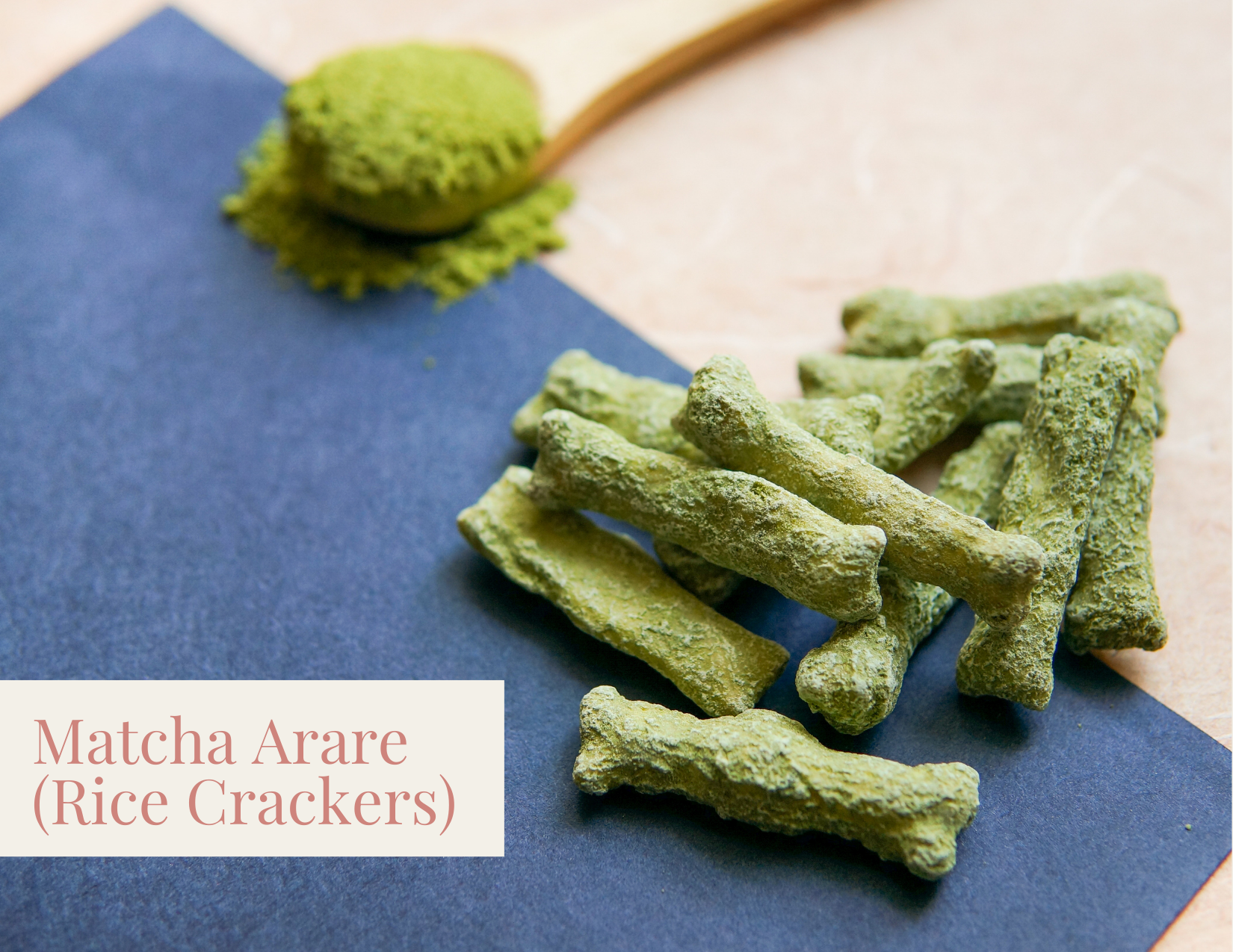 These bite-sized arare (crackers made from mochi or glutinous rice) showcase the beautiful bitter sweet flavors of Japanese matcha from Uji.