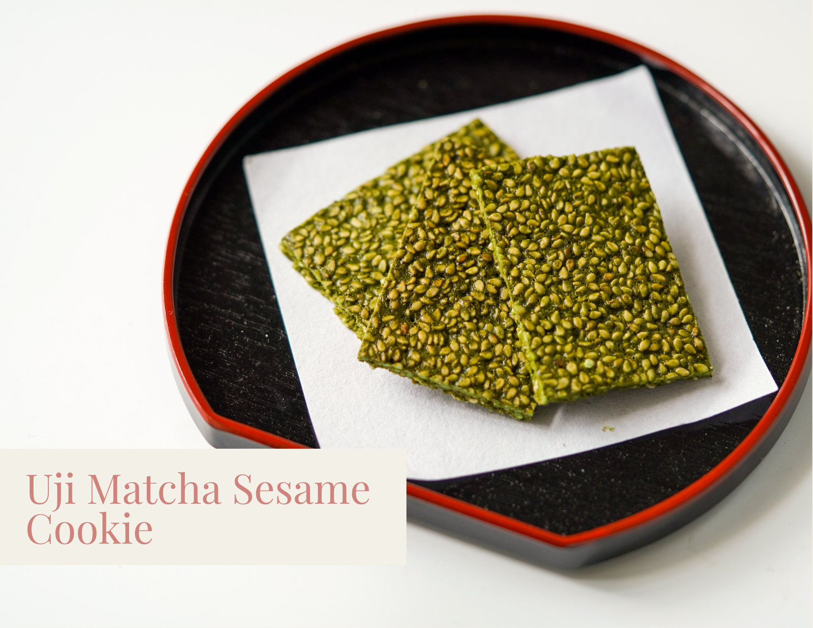 These bite-sized treats combine high-quality matcha from Uji with another iconic Japanese ingredient: goma (sesame seeds). Goma find their way into many Japanese dishes adding a subtle nutty, buttery flavor. Mixed with the bittersweet taste of matcha and a hint of sugar, these cookies have a crispy texture, nutty sesame flavor and delightful sweetness.