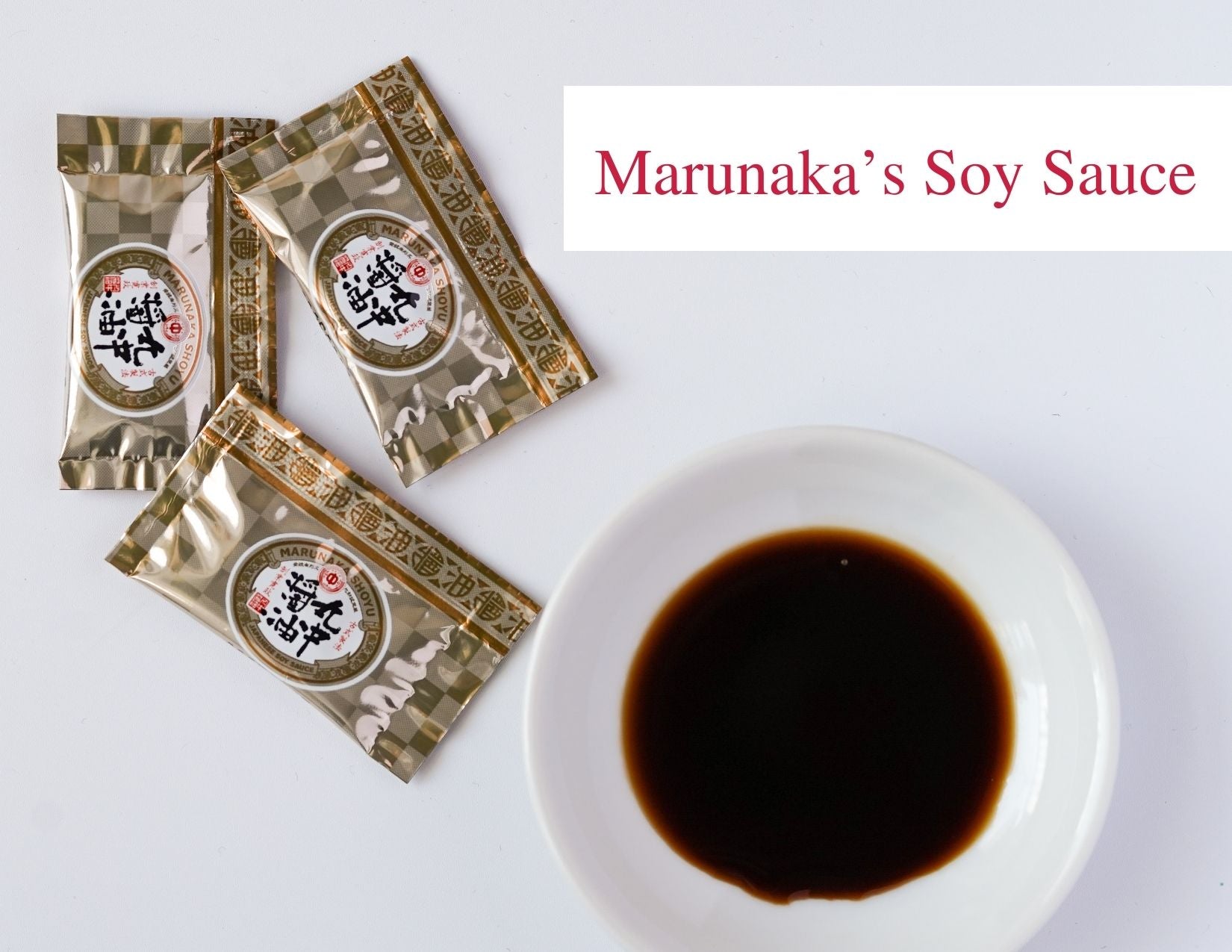 Marunaka’s Soy Sauce | Producer: Marunaka Shoyu | Prefecture: Shiga | Ingredients: Soybeans (non-GMO, domestic), wheat (domestic), sun-dried salt Vegan, Dairy-free | Size: 5 single serving packets (4ml each)
