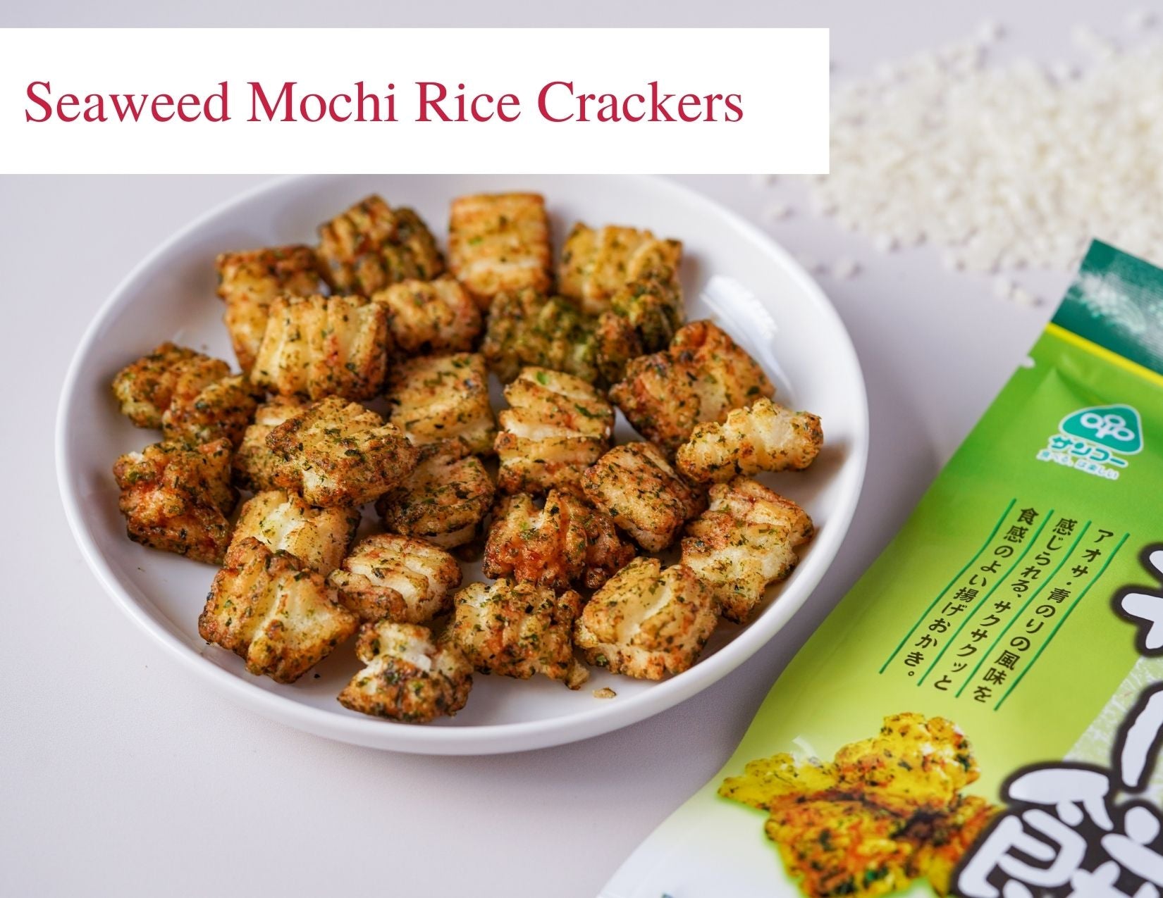 Seaweed Mochi Rice Crackers | Producer: Sanko | Prefecture: Aichi | Ingredients: Glutinous rice (domestic), tamari (includes wheat), sugar (beet sugar), seaweed, potato starch (potatoes: non-GMO), starch syrup, concentrated dashi (kelp, bonito flakes, salt) Dairy-free | Size: 40g