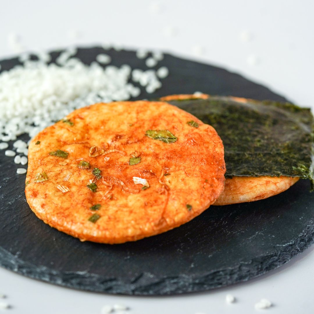 Big, round, crunchy senbei are the most well known type of rice cracker from Japan. These senbei are made from 100% domestic Uruchi rice which is thick but soft, with a natural sweetness. The shape of each cracker is unique as they are hand-crafted one-by-one by skilled craftsmen. The negi (spring onion) and miso flavor is a harmony of domestic spring onions and umami-rich miso while the norimaki (seaweed) flavor resembles traditional rice wrapped in seaweed.