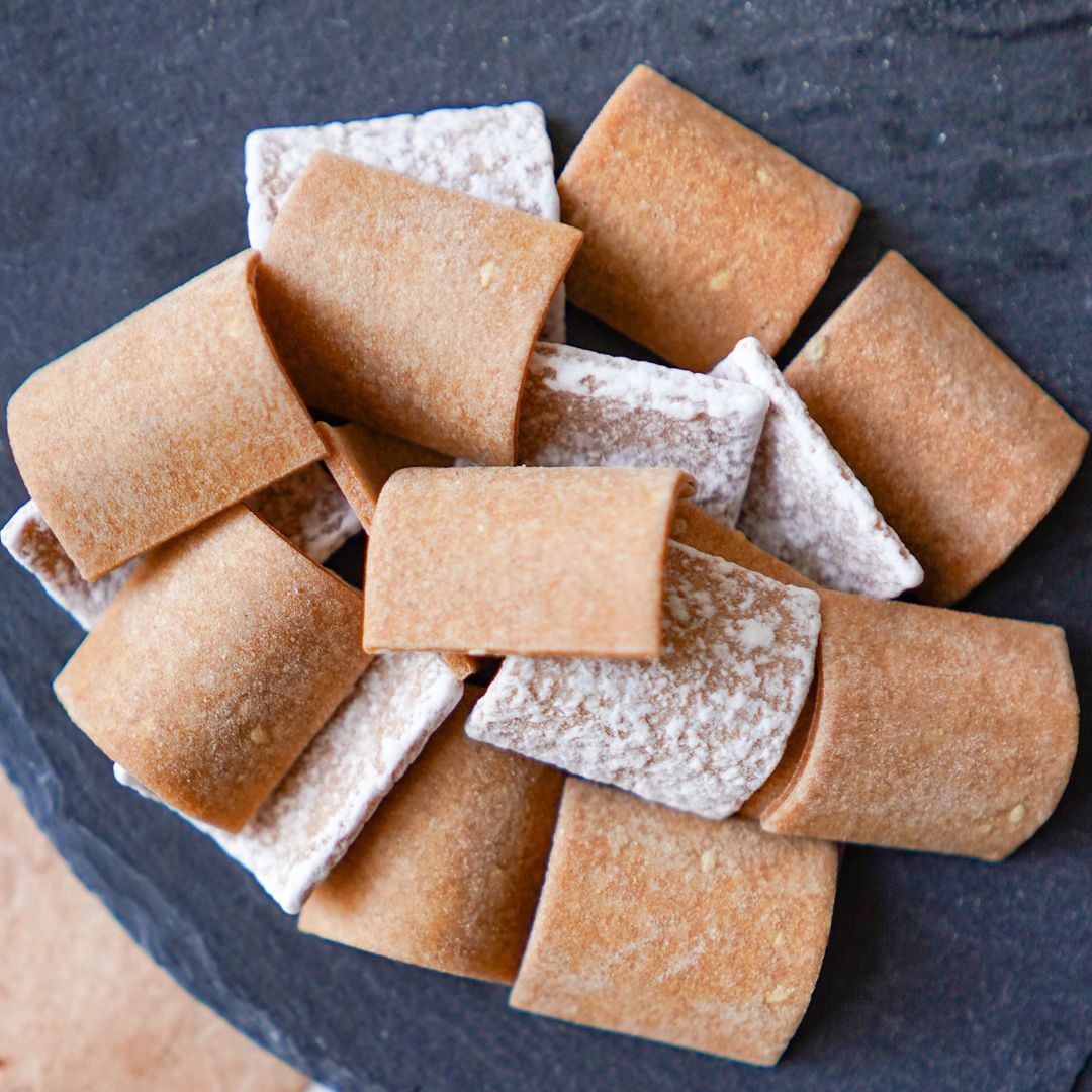 Yatsuhashi (Kyoto Cinnamon Cookie) | Producer: Aoyama Mameju | Prefecture: Kyoto | Ingredients: Sugar, rice flour, kinako (roasted ground soybeans), ground cinnamon, sesame (incl. soy and sesame) Vegan, Gluten-free, Dairy-free | Size: 100g