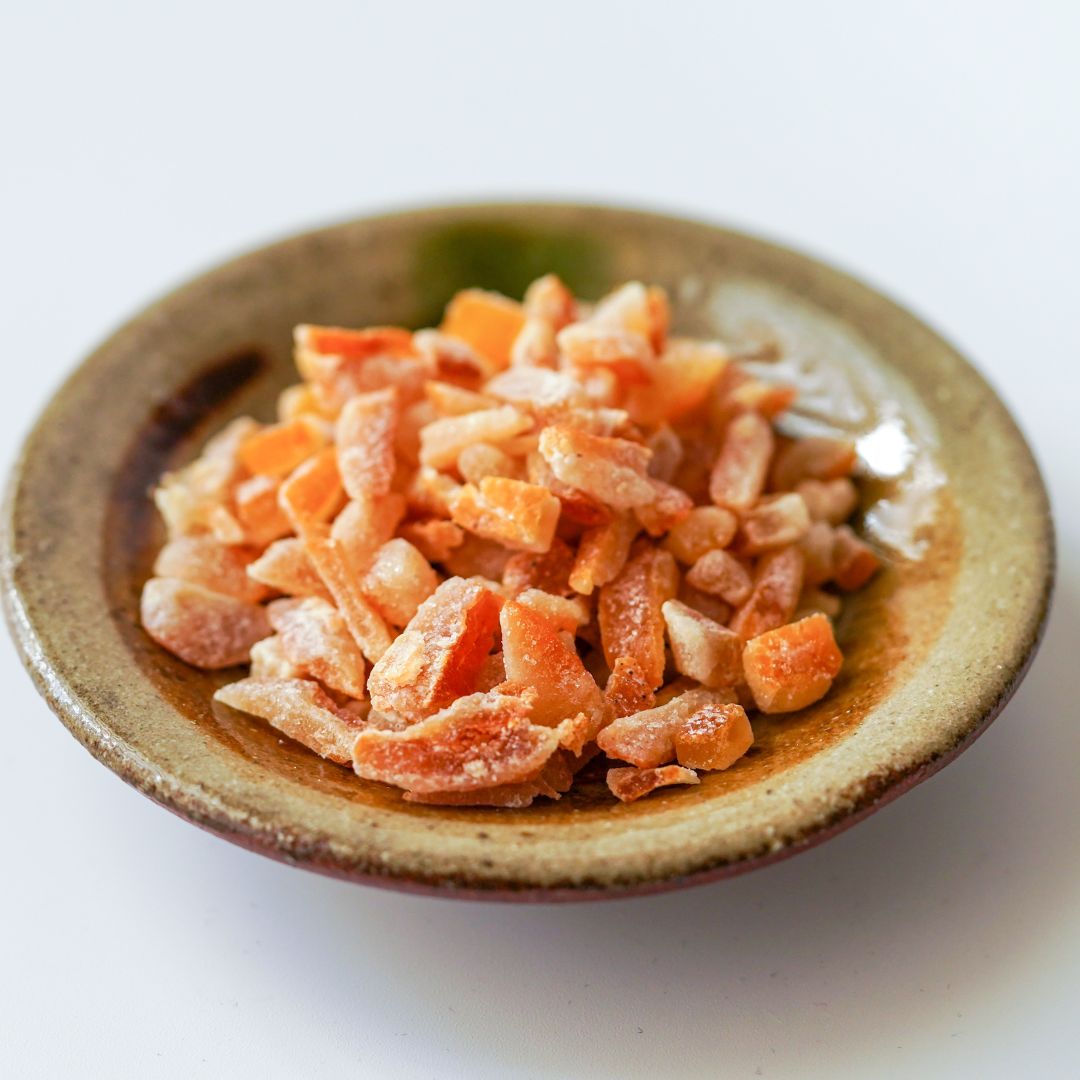 Yuzu is Japan’s beloved citrus fruit with a taste best described as a cross between a tart lemon, a sweet mandarin orange, and a fragrant grapefruit. In this sweet and sour treat, yuzu peels are artfully stewed in natural granulated sugar with a touch of honey to add the right amount of sweetness to the tart, acidic notes of the yuzu peel.
