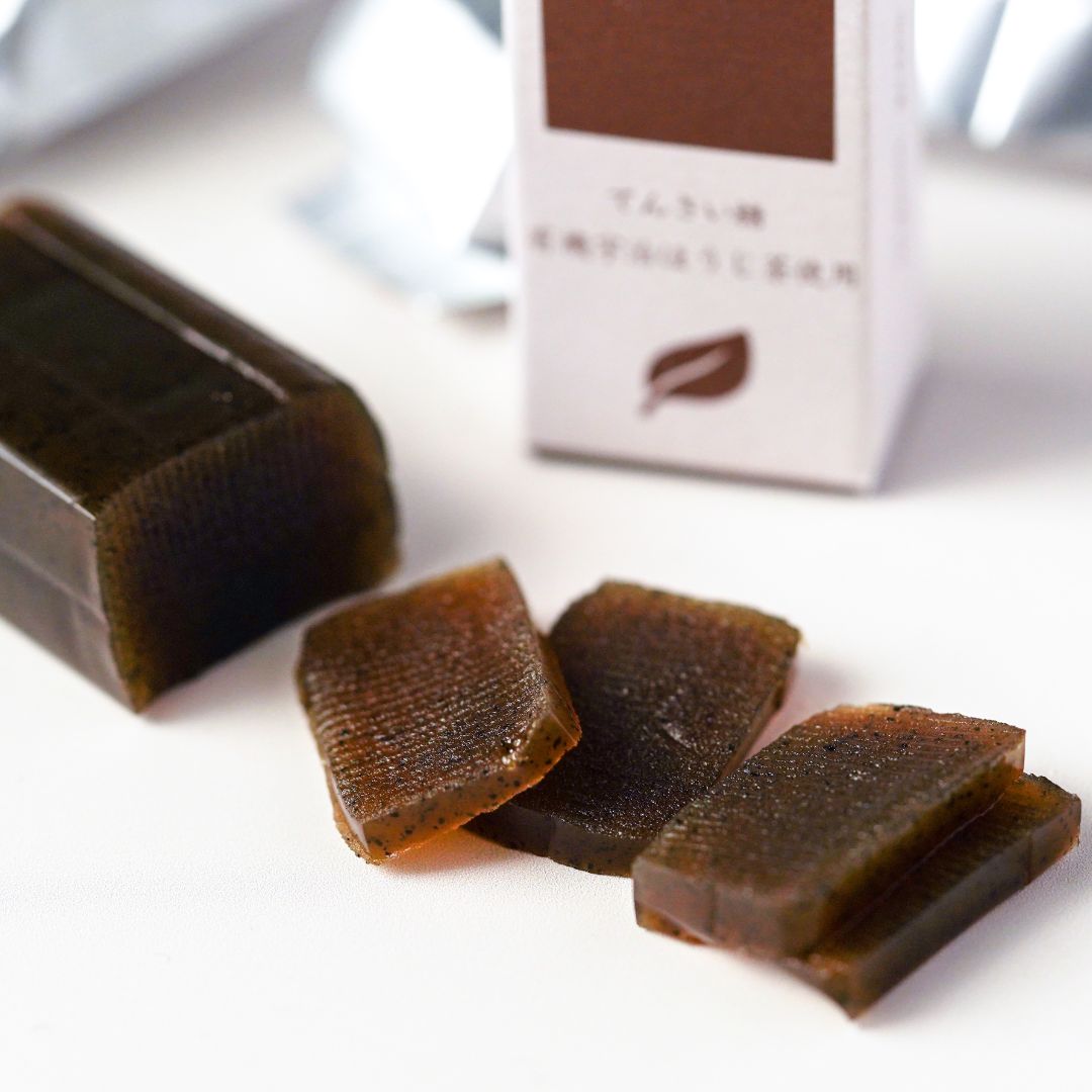Yokan is a firm jelly-like traditional Japanese dessert. This special yokan is flavored with houjicha (roasted green tea) made from organic green tea from Wazuka Town in Uji, Kyoto - the second oldest tea-growing region in Japan. Roasting the leaves creates a slightly sweet, nutty, roasted flavor.