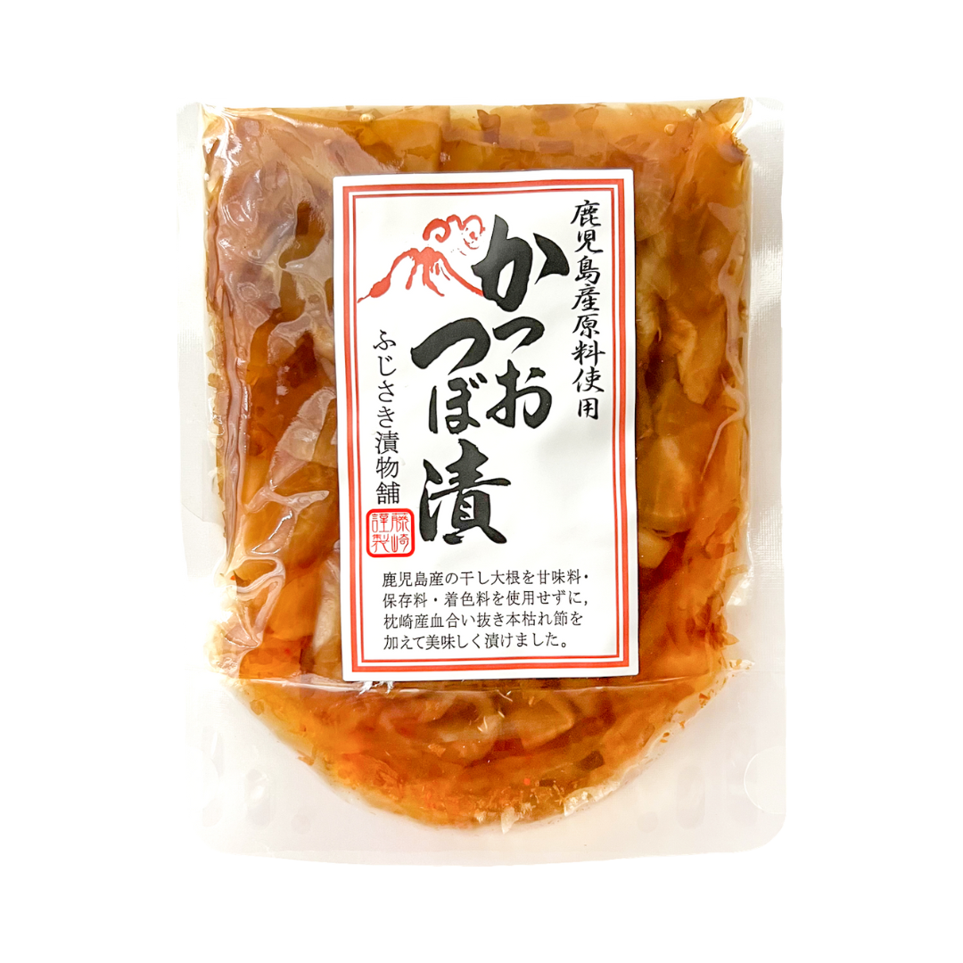 Tsubozuke, which get their name from the large ceramic pots called "tsubo" that they are pickled in, originated in Kagoshima and have been passed down for over 400 years. These award-winning tsubozuke feature daikon (Japanese radish) grown on Sakurajima, one of Japan's most active volcanoes. Fermented with salt for at least 6 months and then seasoned with katsuobushi (bonito flakes) from Makurazaki, the largest producer of katsuo in Japan, and sake kasu (sake lees), these tsubozuke have a milder flavor and aroma than other pickles but are full of umami.