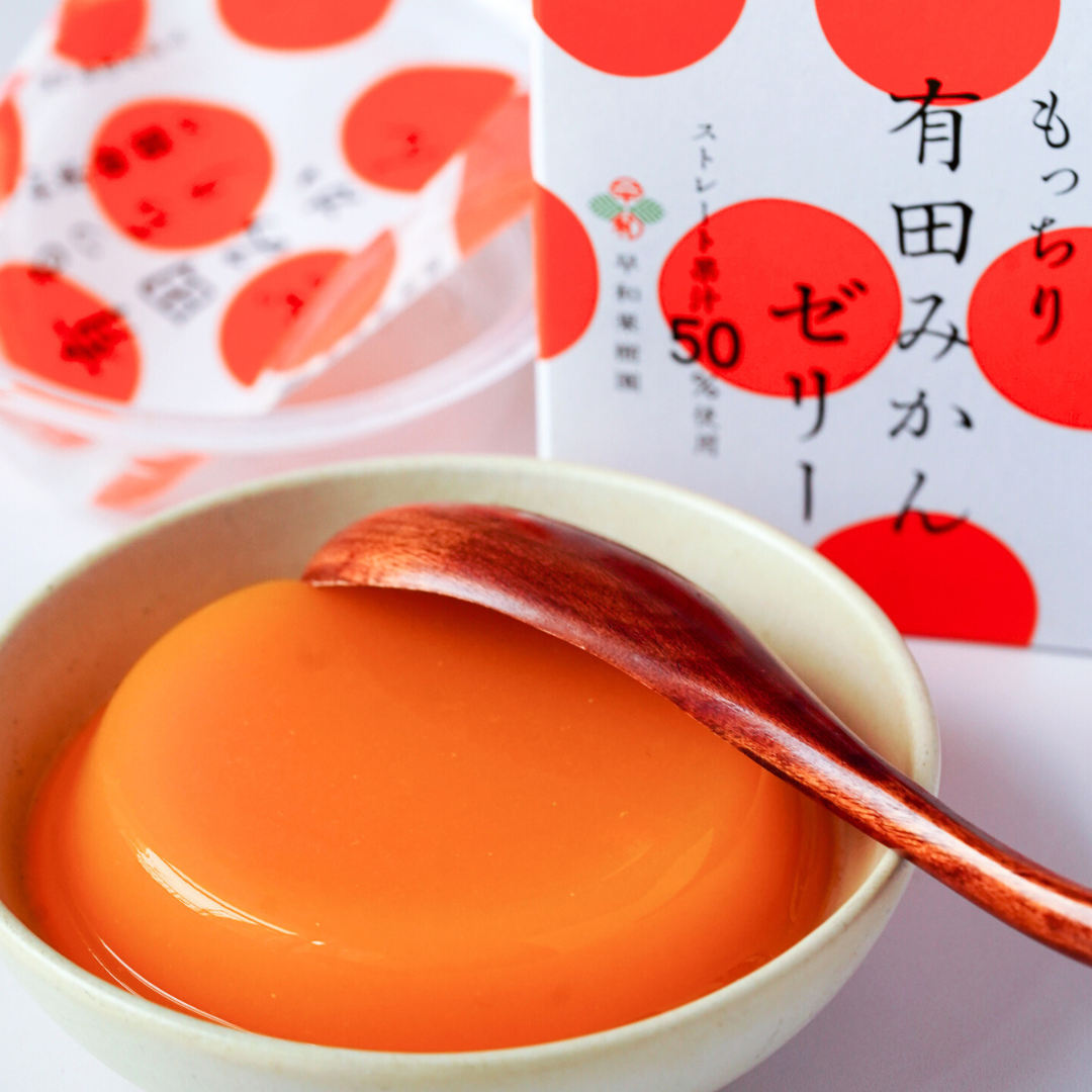 Beloved for their subtle sweetness and delightfully tangy taste, mikan (mandarin oranges) are quite popular in Japan. Arita City is the largest mikan-producing region in the country and has been cultivating citrus for over 450 years. Made with 50% Arita mikan juice from Sowa Kajuenfs own orchards, this unique mikan jelly provides a rich citrus flavor with each bite. The unique and luxurious gmochi mochih chew of the pudding is achieved using kanten (agar), a natural plant-based thickener, making this refreshing treat vegan-friendly.