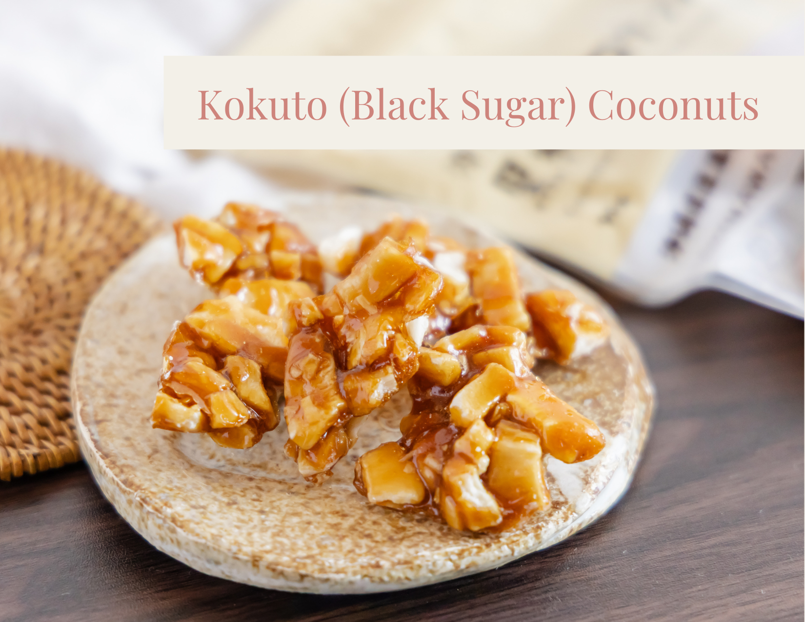 Ingredients: Coconut chunks (coconuts (Malaysia), sugar, salt), raw sugar (sugarcane (Okinawa Prefecture), starch syrup (domestic)), kokuto (black sugar) (sugarcane (Okinawa Prefecture)), molasses (sugarcane (Okinawa Prefecture))